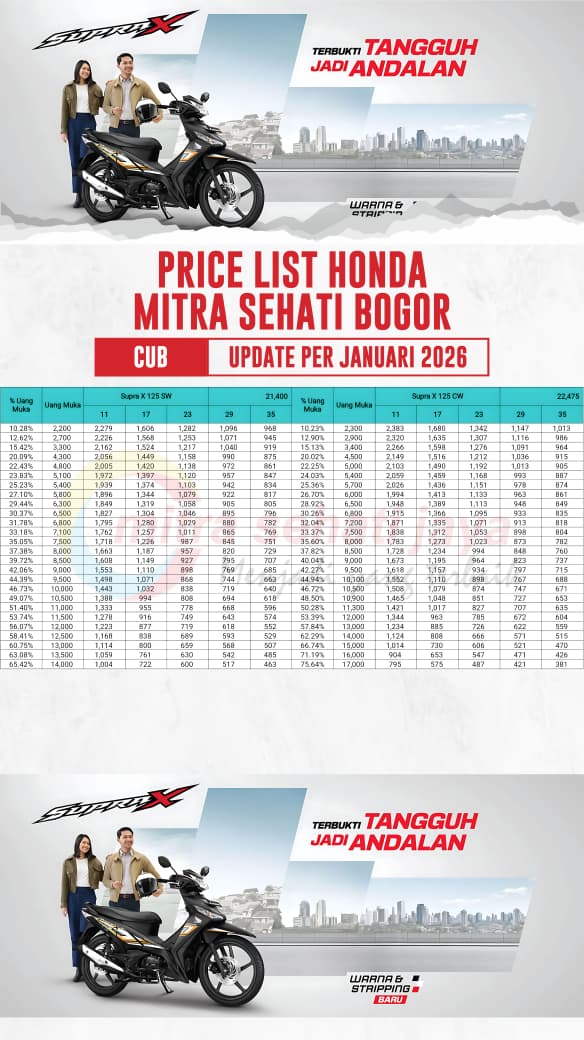 Tabel Harga OTR dan DP Motor Honda Tipe CUB Januari 2026