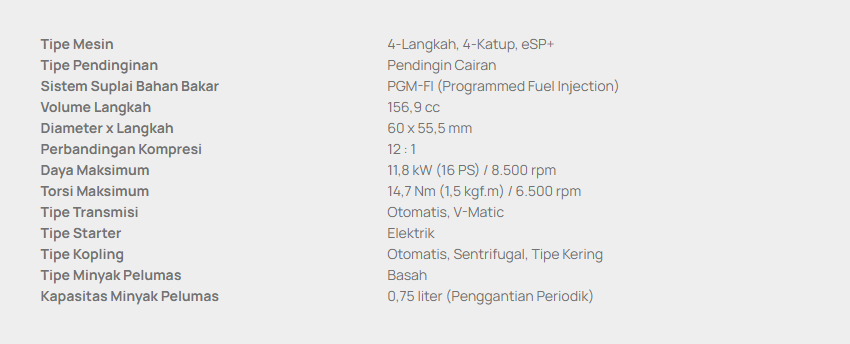 VARIO 160 ABS 31,525,000 3200 2300 2352 1700 1885 1400 1610 1100 1443