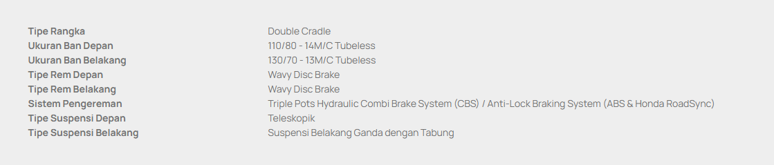 New BeAT Sporty CBS 19,300 2,000 1,400 1,463 600 1,169 500 1,005 500 903