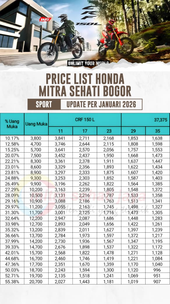 HARGA KAMI DI PASTIKAN LEBIH MURAH CV.MITRA SEHATI JAYA PENJUALAN MOTOR BARU HONDA