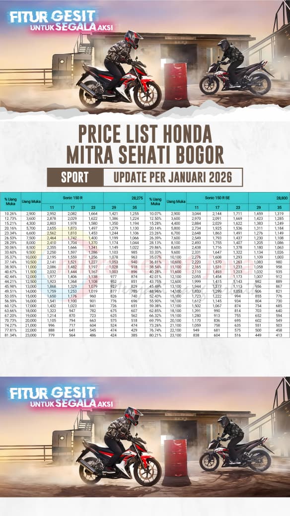 HARGA KAMI DI PASTIKAN LEBIH MURAH CV.MITRA SEHATI JAYA PENJUALAN MOTOR BARU HONDA